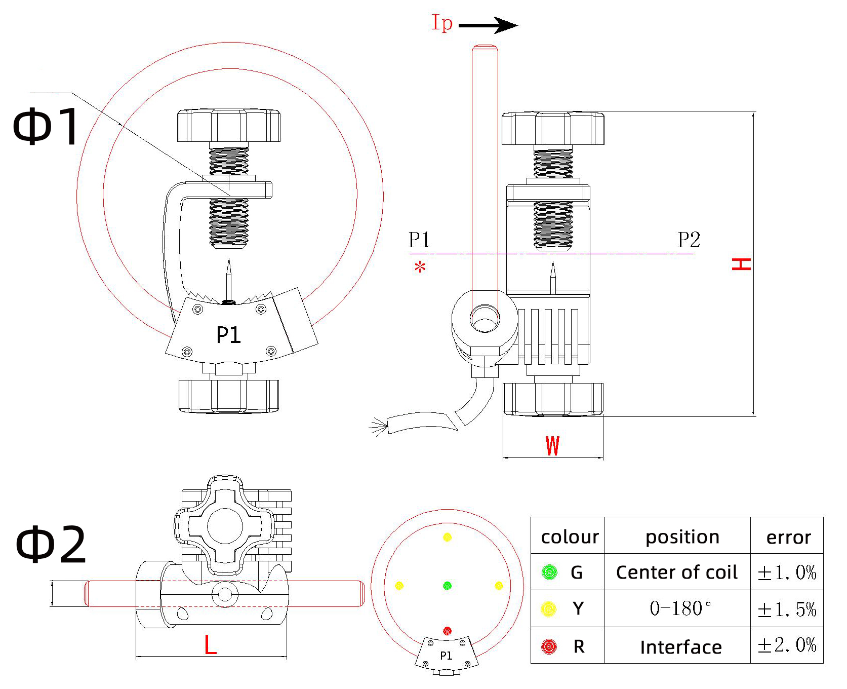 * Structure à noyau divisé, facile à installer sur site et facile à utiliser. Installation ou retrait rapide et facile sans déconnecter le câble primaire testé, efficace pour des tests de courant sûrs et faciles.